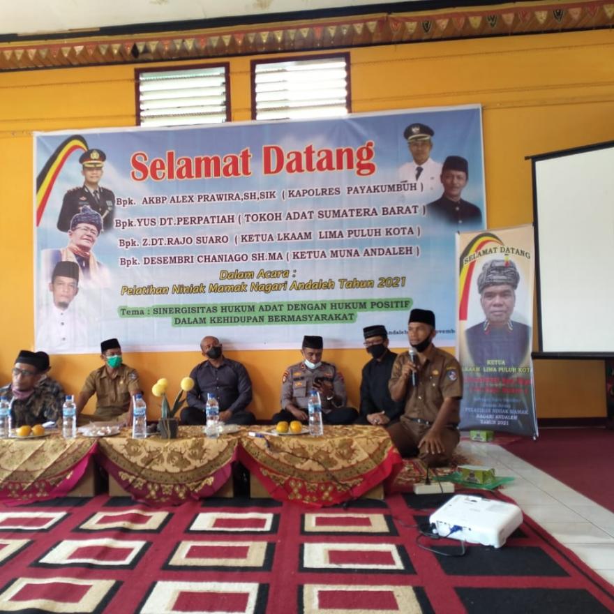 Wali Nagari Andaleh menyampaikan pesan penting kepada Niniak Mamak pemangku adat di Nagari Andaleh. Pesan penting tersebut di sampaikan pak wali, Harmen Sastra, bertepatan dengan pembukaan Pelatihan Peningkatan Kapasitas Niniak Mamak yang di adakan di Balai Adat Nagari Andaleh hari Selasa tanggal 16 November 2021. Pelatihan itu sendiri di adakan selama tiga hari berturut turut dari hari Selasa hingga Kamis di ikuti hampir seluruh Niniak Mamak Nagari Andaleh. Pelatihan yang bertema Sinergisitas Hukum Adat dan Hukum Positif Dalam Kehidupan Bermasyarakat ini di awali dengan pembukaan yang di lakukan oleh Wali Nagari Andaleh.