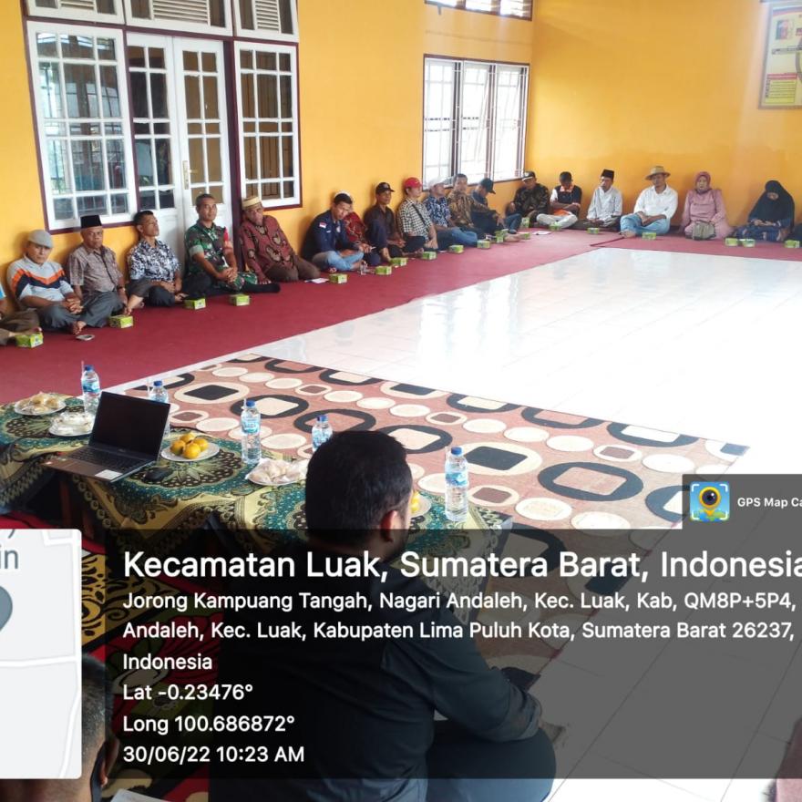 Setelahnya di buka Acara dengan penyampaian Hal-hal penting oleh Wali Nagari Andaleh Bapak Harmen sastra. dalam Penyampaiannya Bapak wali nagari,"Menyampaikan terkait adanya Dana desa yang bersumber dari pemerintahan pusat yang berjumlah +-Rp.900Jt.telah diatur penggunaannya oleh peraturan Perundangan yang mana 40% dari dana Yang ada Diselenggarakan untuk BLT-DD yang telah tersalurkan dari Bulan Januari-Juni 2022, Sebnyak 97 KK penerima manfaatnya dengan nominal Rp.300.000./bulan. dan Sisa 6 Bulan Lagi akan dibayarkan sesuai Jadwal yang telah di tentukan.8% dari dana desa yang ada di gunakan untuk penanganan COVID-19"